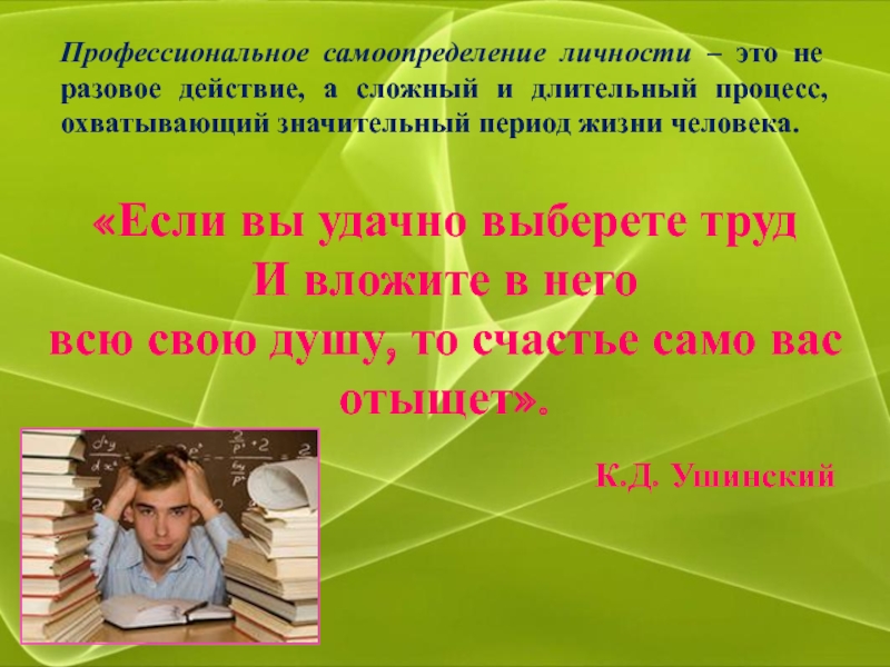 Профессиональное самоопределение личности – это не разовое действие, а сложный и длительный процесс, охватывающий значительный период жизни человека.