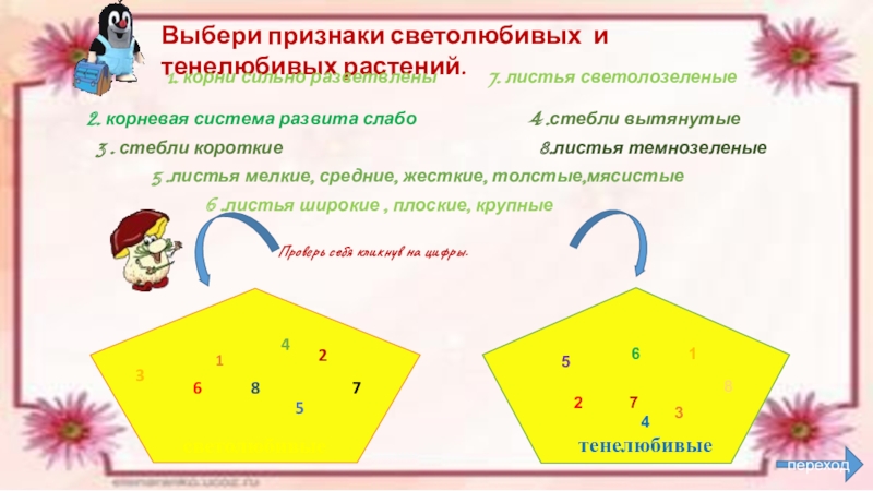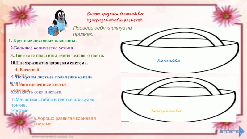 Проверь себя кликнув на признак.