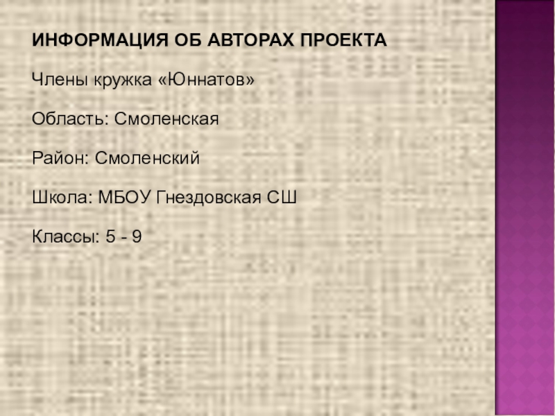 Авторы проекта: члены кружка «Юннатов»