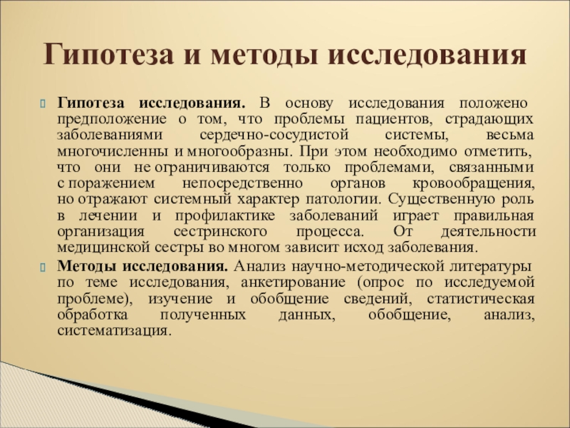 Гипотеза и методы исследования