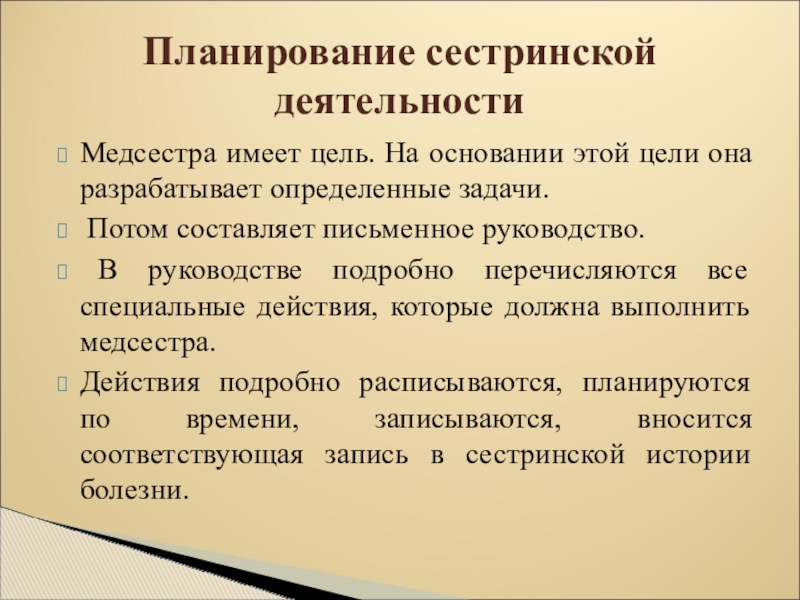 Планирование сестринской деятельности