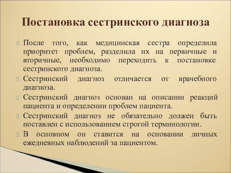 Постановка сестринского диагноза