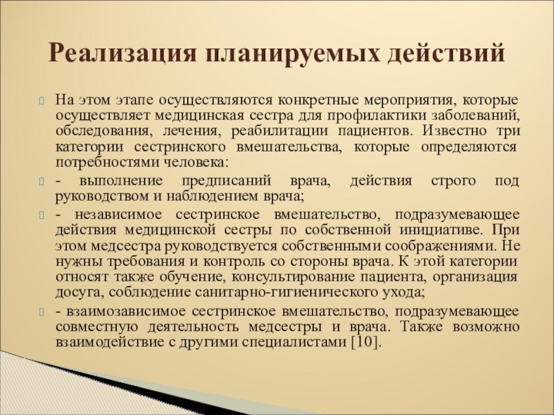 Реализация планируемых действий
