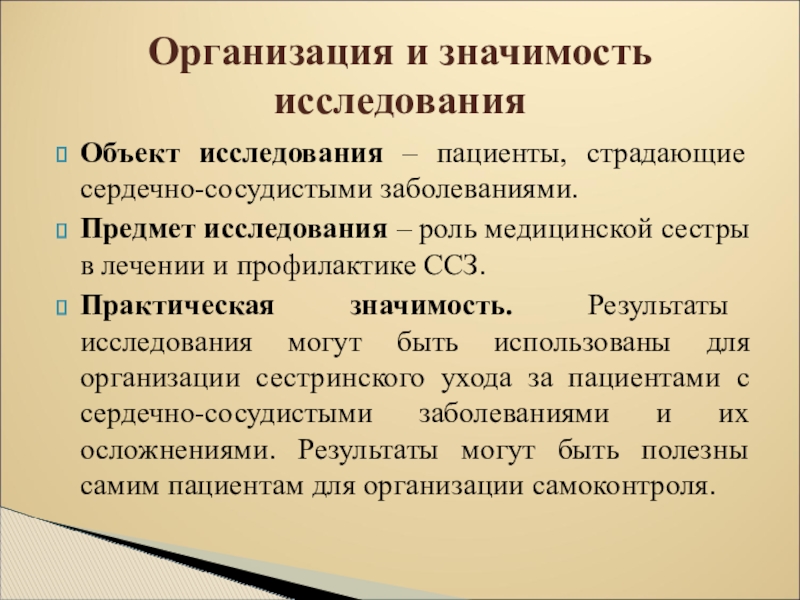 Организация и значимость исследования