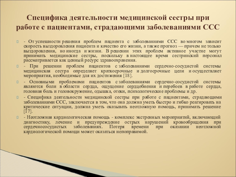 Специфика деятельности медицинской сестры при работе с пациентами, страдающими заболеваниями ССС