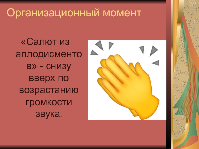 Организационный момент«Салют из аплодисментов» - снизу вверх по возрастанию громкости звука.