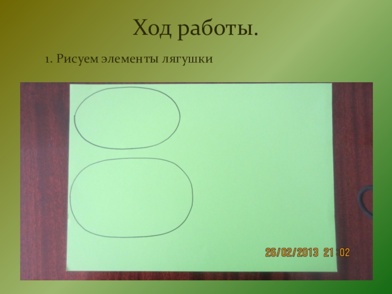 Презентация, доклад по техническому моделированию на тему: Поэтапная работа изготовления аппликации Лягушка