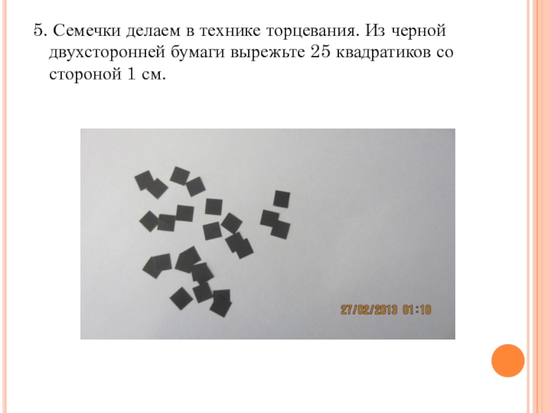 Слайд 95. Семечки делаем в технике торцевания. Из черной двухсторонней бумаги вырежьте
