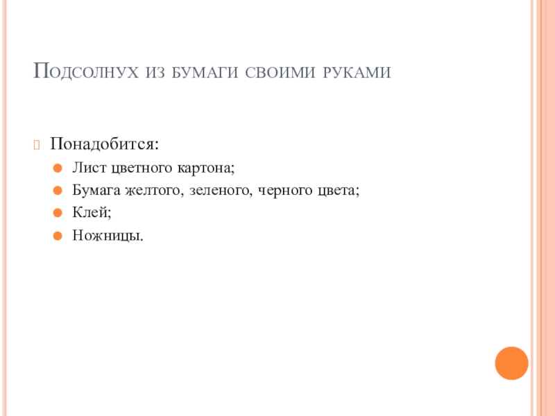 Презентация, доклад по техническому моделированию на тему: Объемная аппликация из цветной бумаги. Подсолнух