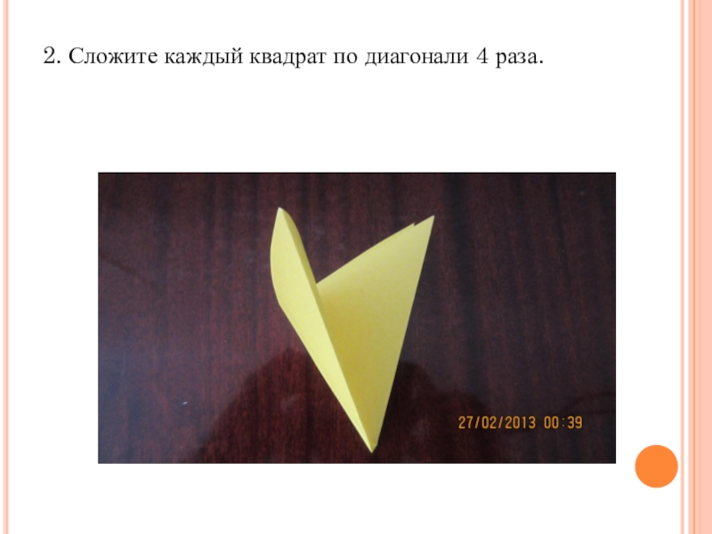 Слайд 62. Сложите каждый квадрат по диагонали 4 раза.
