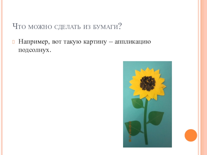 Что можно сделать из бумаги?Например, вот такую картину – аппликацию подсолнух.
