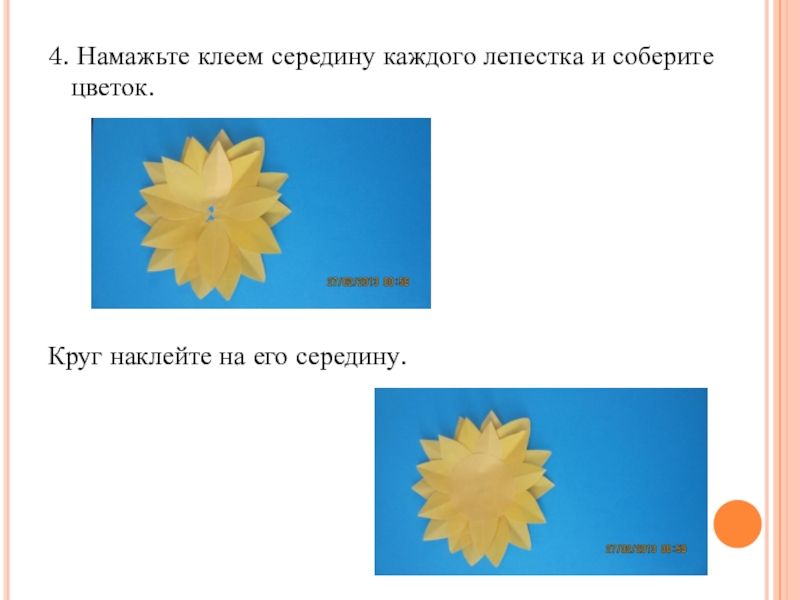 Слайд 84. Намажьте клеем середину каждого лепестка и соберите цветок.