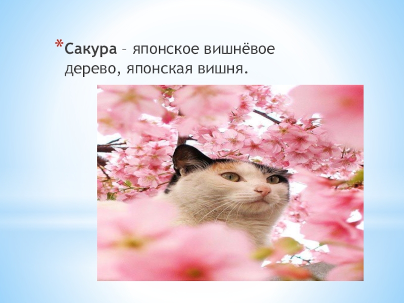 Слайд 3Сакура – японское вишнёвое дерево, японская вишня.