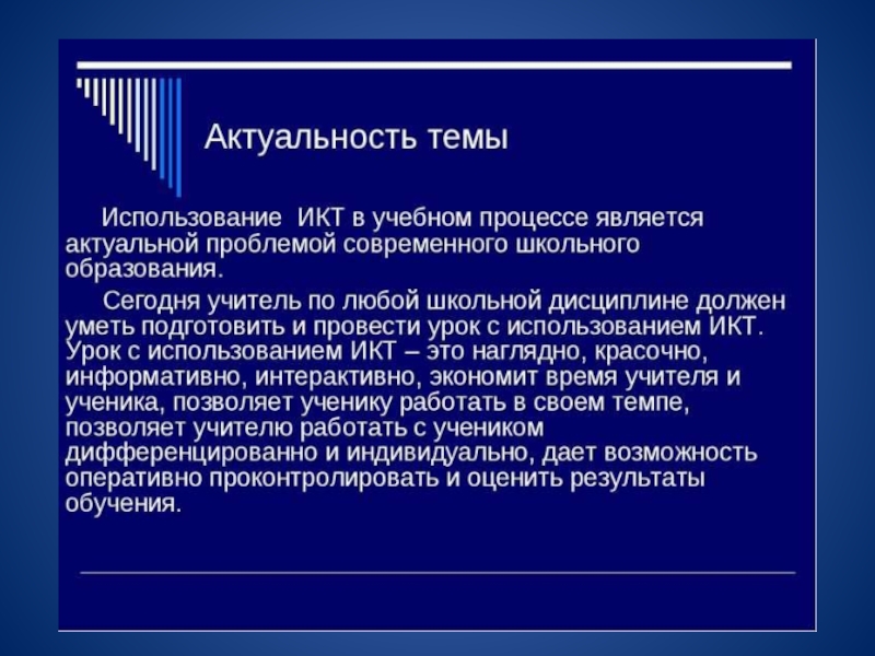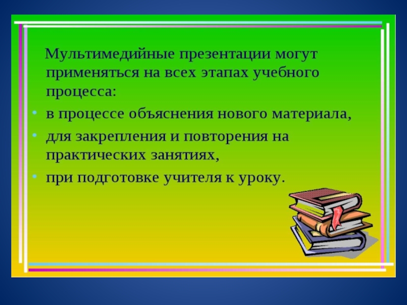 означает спектр информационных технологий, использующих различные программные и технические средства с целью наиболее эффективного воздействия на пользователя. Грамотное использование этих средств развивает ресурсы современного урока и оптимизирует учебный процесс.