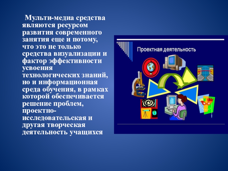 Мульти-медиа средства являются ресурсом развития современного занятия еще