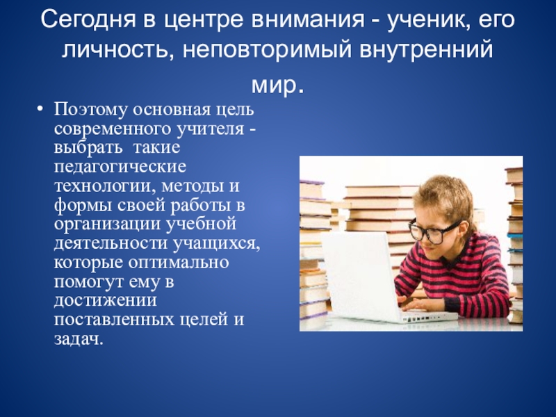 Слайд 3Сегодня в центре внимания - ученик, его личность, неповторимый внутренний мир.