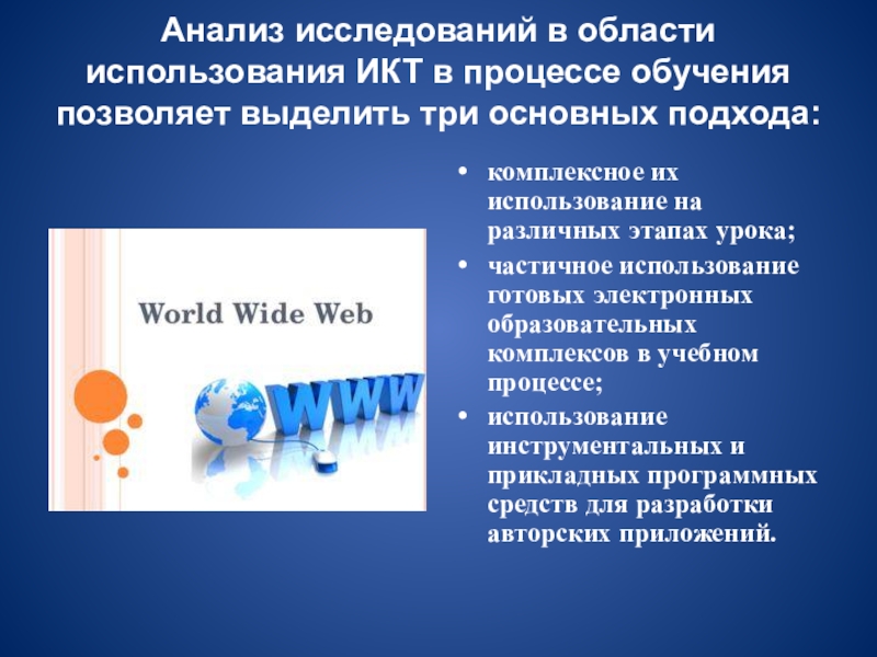 Слайд 9Анализ исследований в области использования ИКТ в процессе обучения позволяет выделить