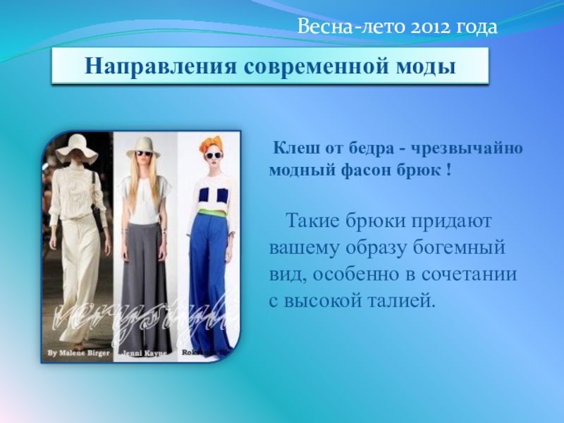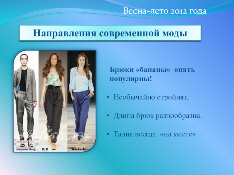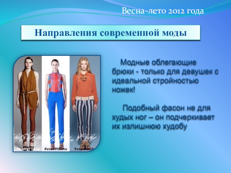 современные направления моды (весна-лето 2012 года, слайд № 8, 9, 10, 11)