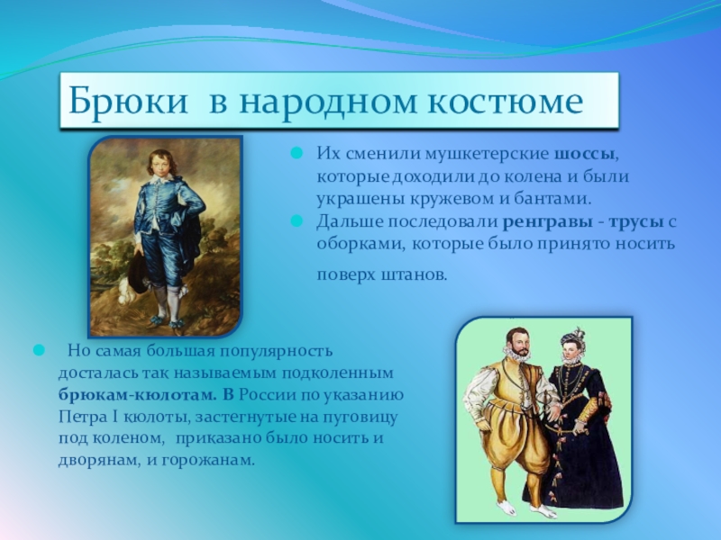 Дальше последовали ренгравы - трусы с оборками, которые было принято носить поверх штанов.