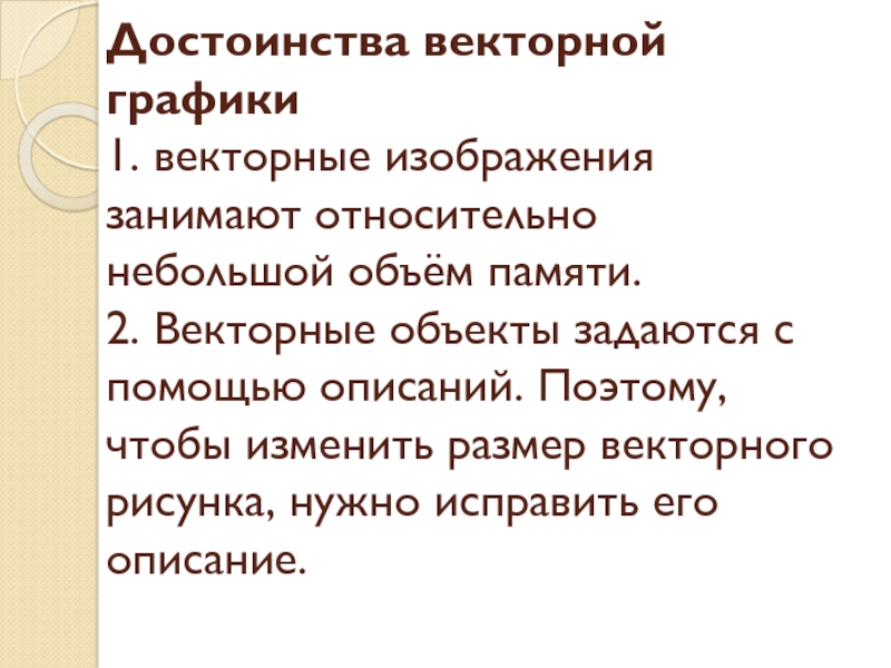 графики состоит в том, что при изменении масштаба изображения оно не теряет своего качества, то есть при изменении размеров изображения не изменяется размер файла.