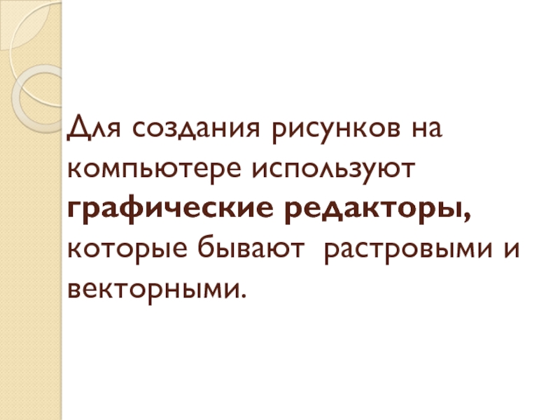 Слайд 9Для создания рисунков на компьютере используют графические редакторы, которые бывают растровыми