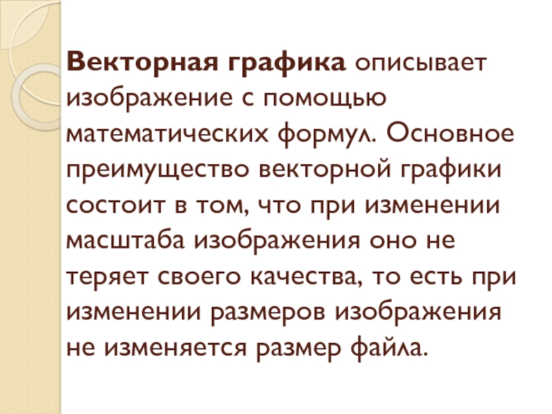 Слайд 18Векторная графика описывает изображение с помощью математических формул. Основное преимущество векторной