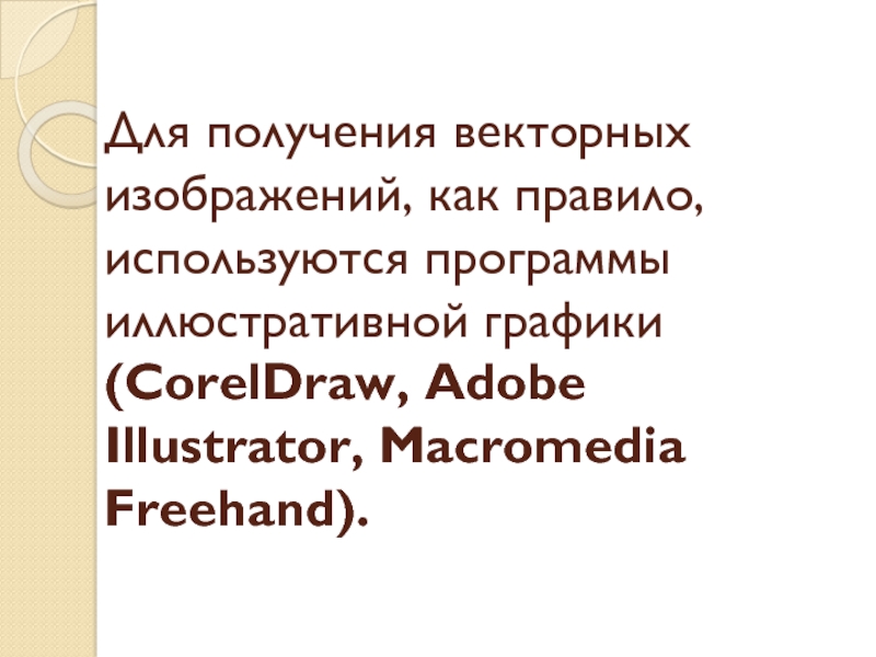 Слайд 23Для получения векторных изображений, как правило, используются программы иллюстративной графики (CorelDraw,