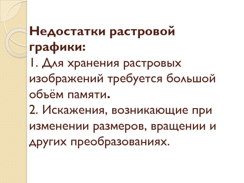 Слайд 15Недостатки растровой графики:
