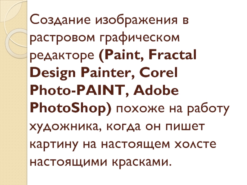 Слайд 17Создание изображения в растровом графическом редакторе (Paint, Fractal Design Painter, Corel