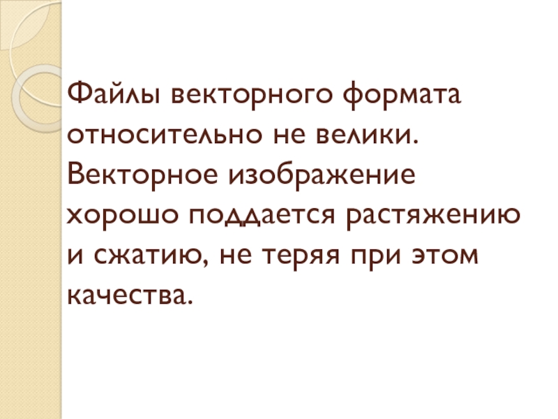 Слайд 25Файлы векторного формата относительно не велики. Векторное изображение хорошо поддается растяжению