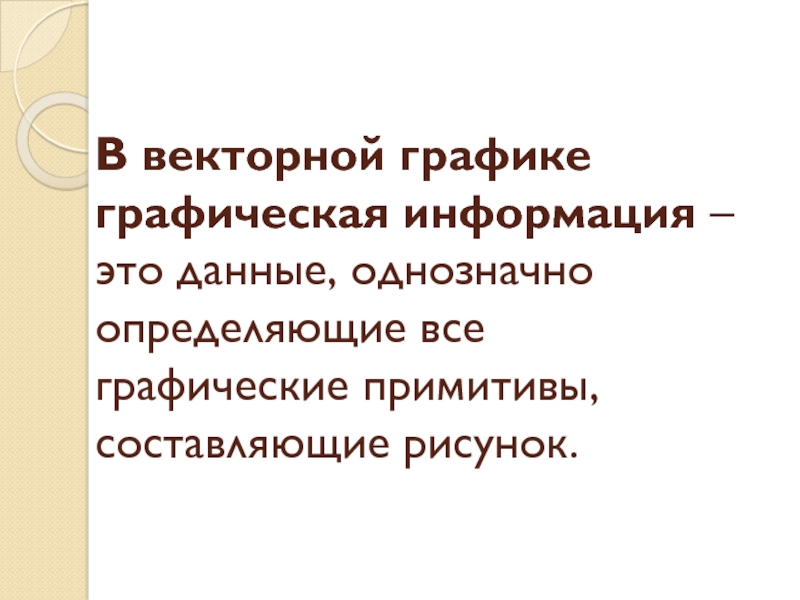 Слайд 7В векторной графике графическая информация – это данные, однозначно определяющие все