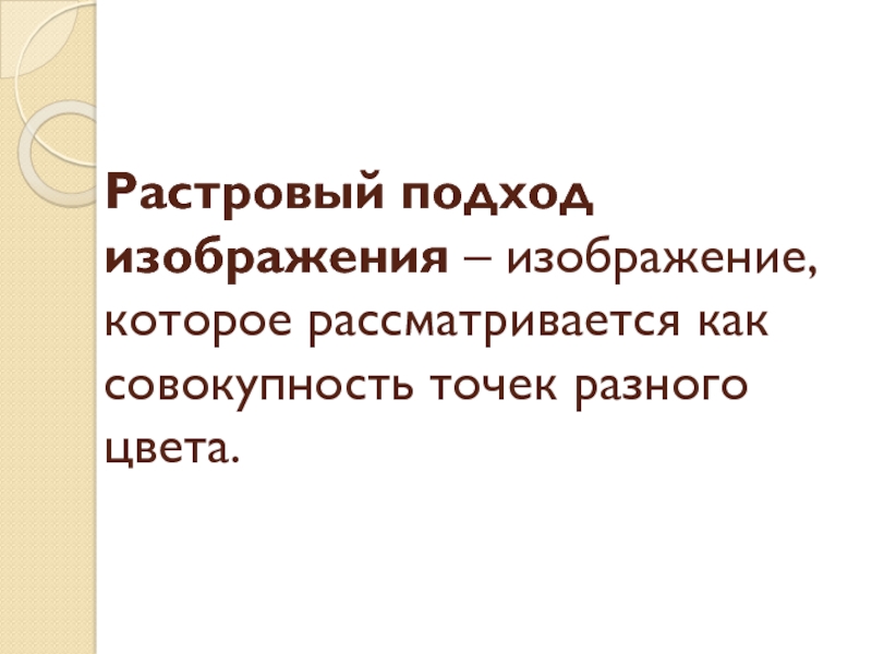 Слайд 4Растровый подход изображения – изображение, которое рассматривается как совокупность точек разного