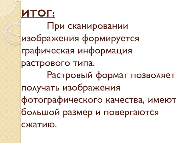 Растровый формат позволяет получать изображения фотографического качества, имеют большой размер и повергаются сжатию.