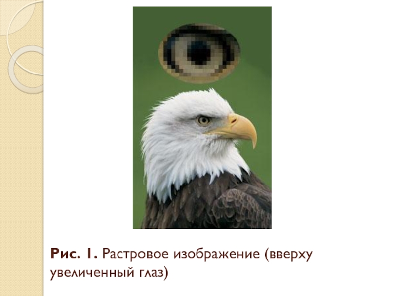 Слайд 11Рис. 1. Растровое изображение (вверху увеличенный глаз)
