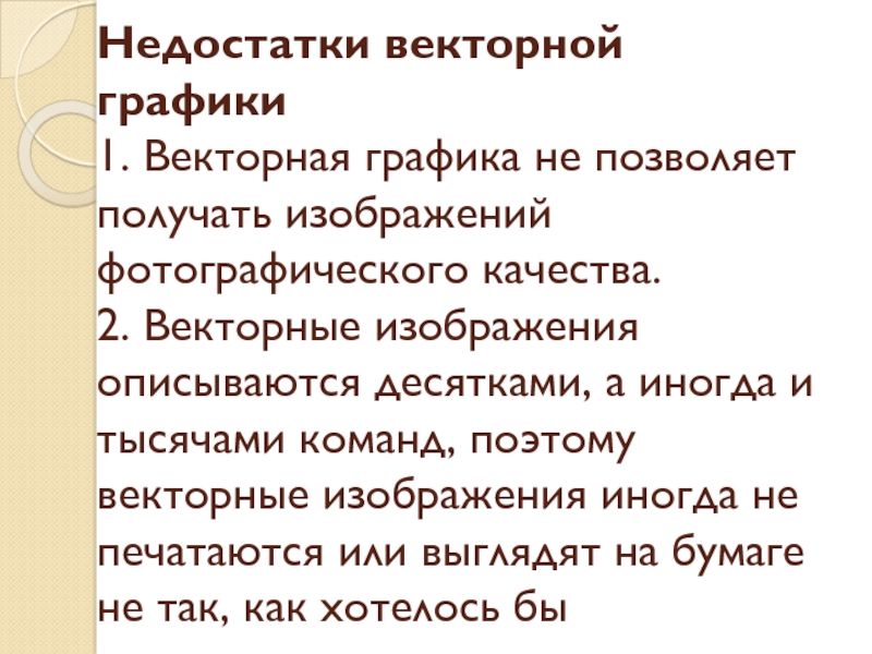 Слайд 22Недостатки векторной графики
