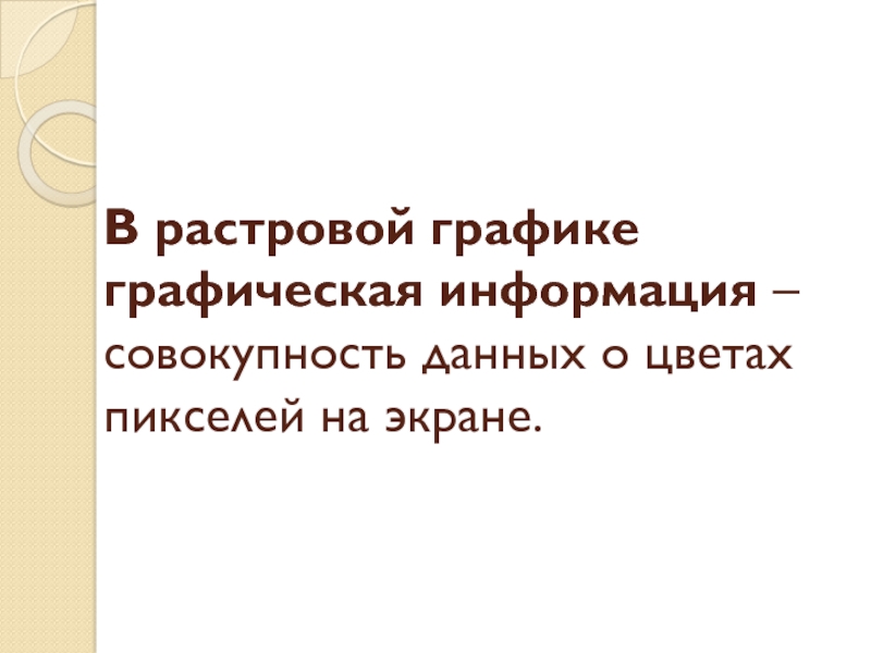 Слайд 6В растровой графике графическая информация – совокупность данных о цветах пикселей