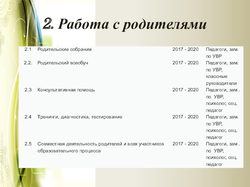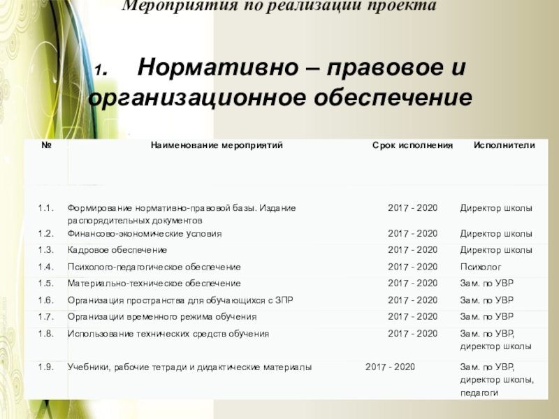 Мероприятия по реализации проекта   1.    Нормативно – правовое и организационное обеспечение