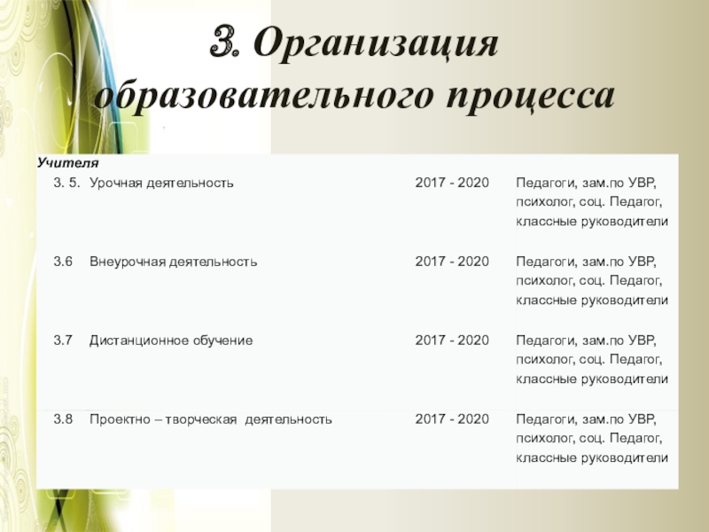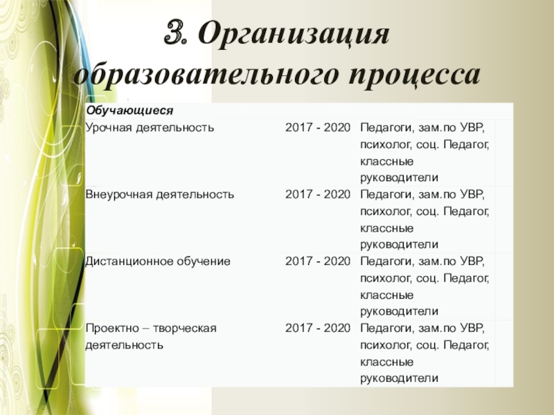 Модифицирование образовательной программы, составление учебного плана и рабочих программ