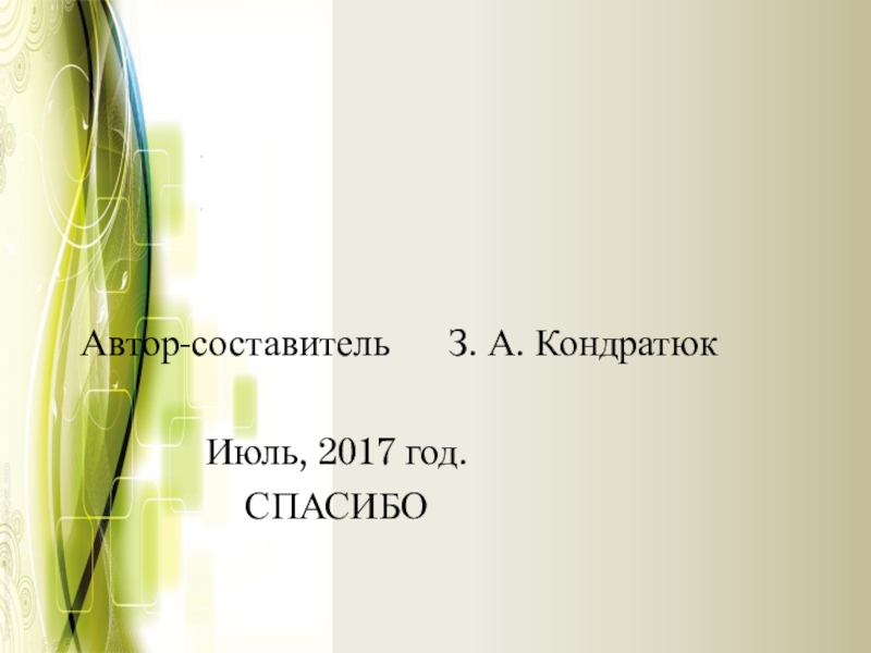 Автор-составитель   З. А. Кондратюк       Июль, 2017 год.