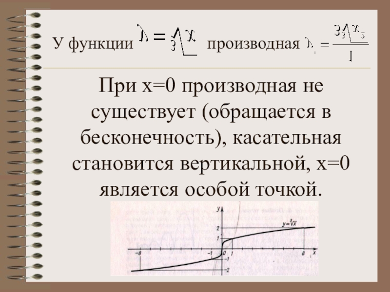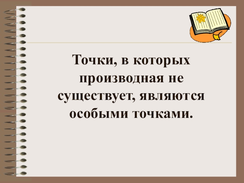 Слайд 22Точки, в которых производная не существует, являются особыми точками.