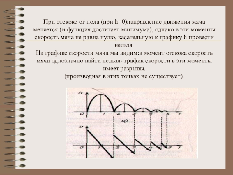 достигает минимума), однако в эти моменты скорость мяча не равна нулю, касательную к графику h провести нельзя.