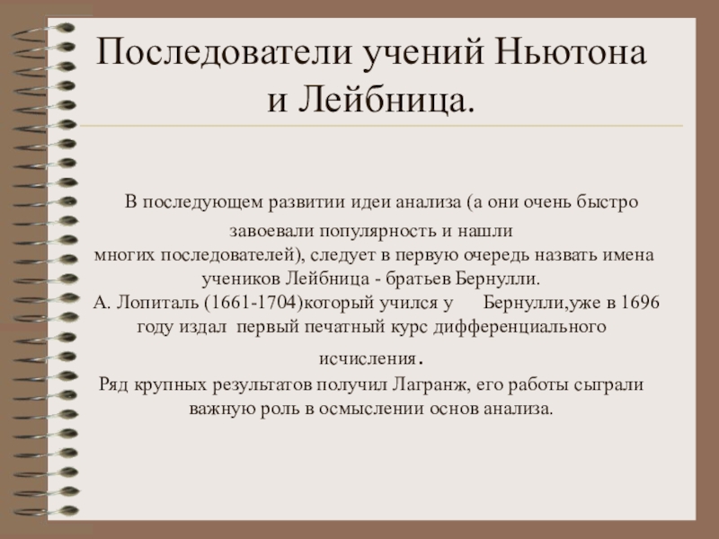 Слайд 16Последователи учений Ньютона и Лейбница.