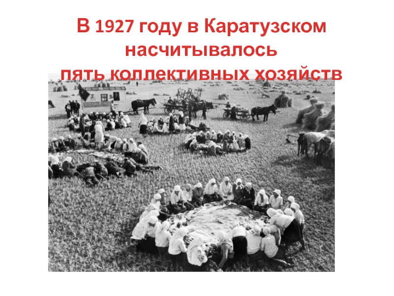 В 1927 году в Каратузском насчитывалось пять коллективных хозяйств