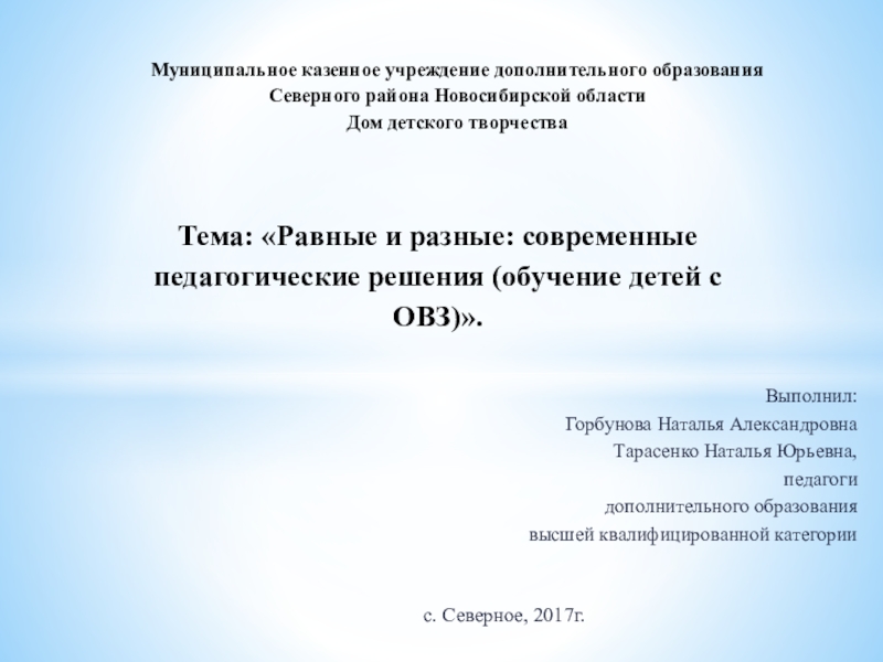 Тема: «Равные и разные: современные педагогические решения (обучение детей с ОВЗ)».