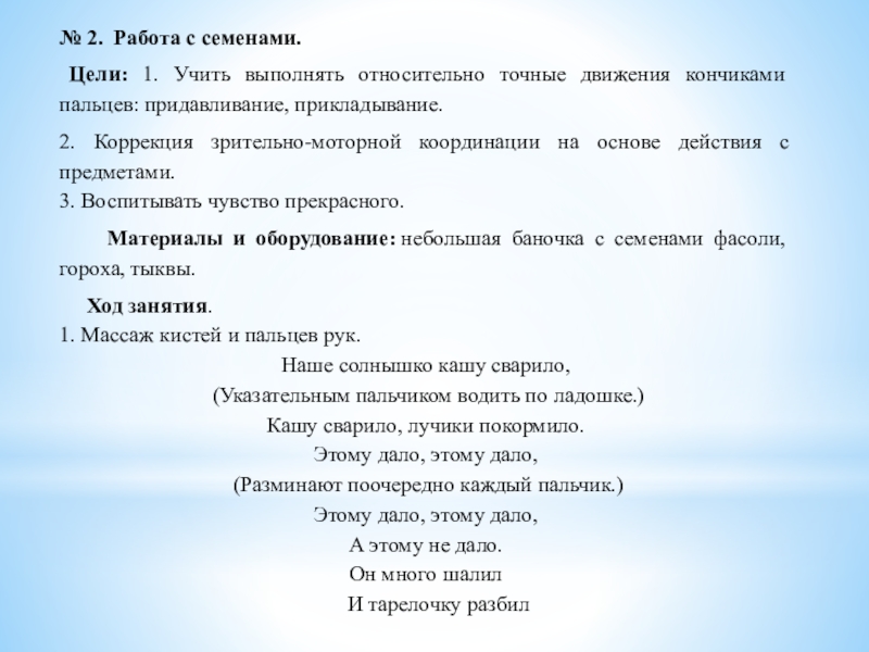 № 2. Работа с семенами.