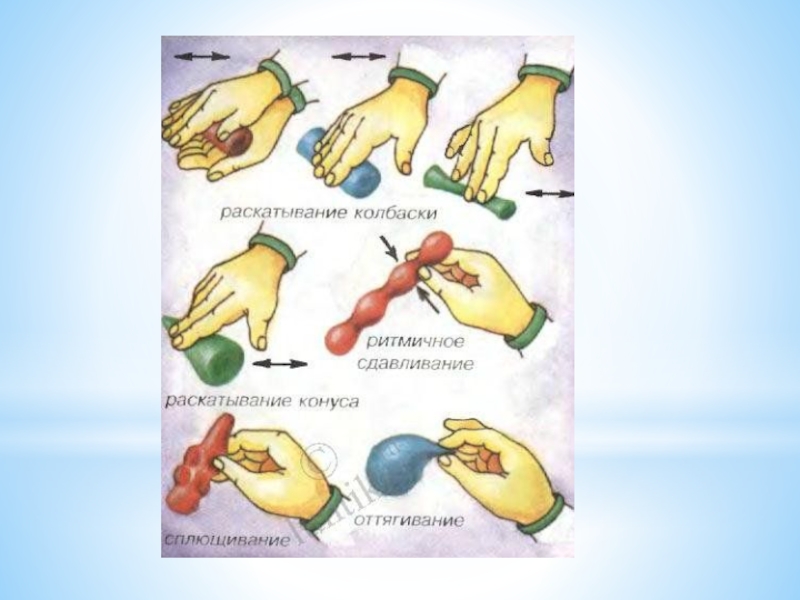 Слайд 19Работа с пластилином. Основные приемы.