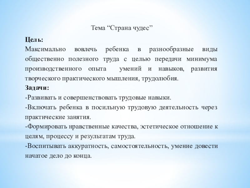 -Развивать и совершенствовать трудовые навыки.