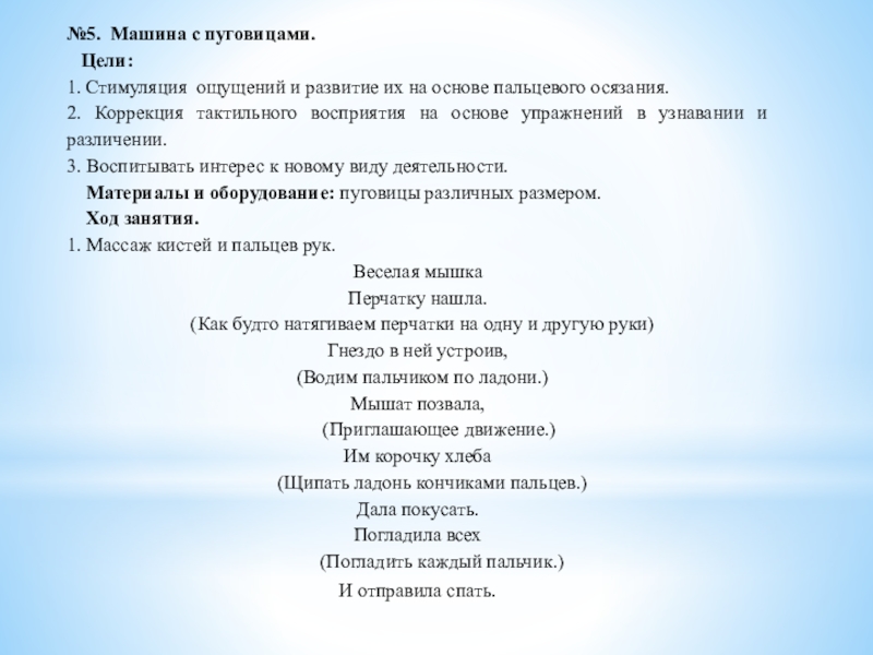 2. Коррекция тактильного восприятия на основе практических действий с предметами.