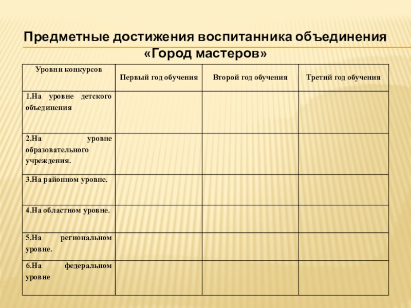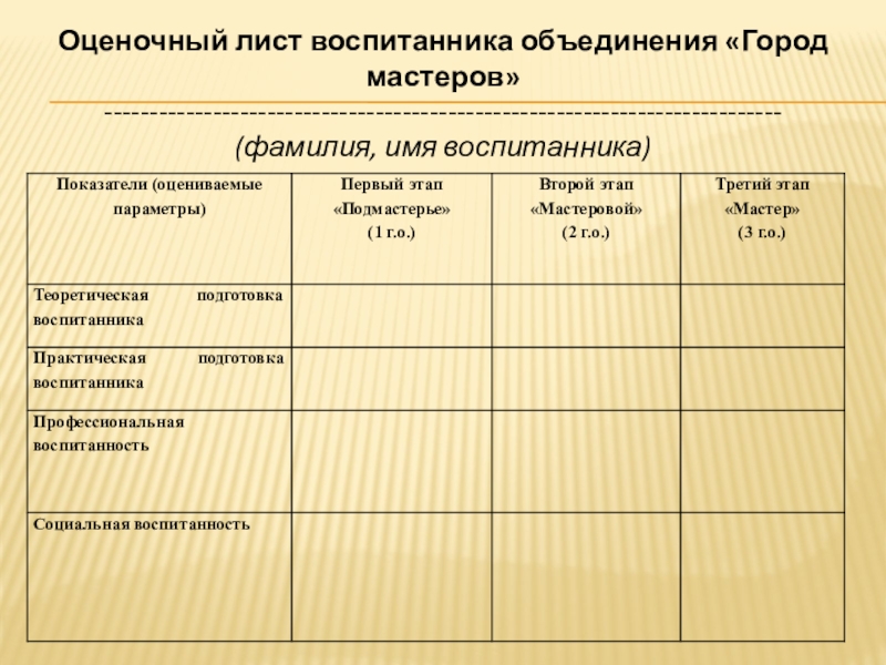Слайд 8Оценочный лист воспитанника объединения «Город мастеров»