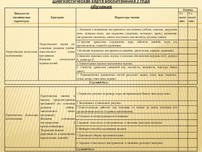 Слайд 4Диагностическая карта воспитанника 2 года обучения